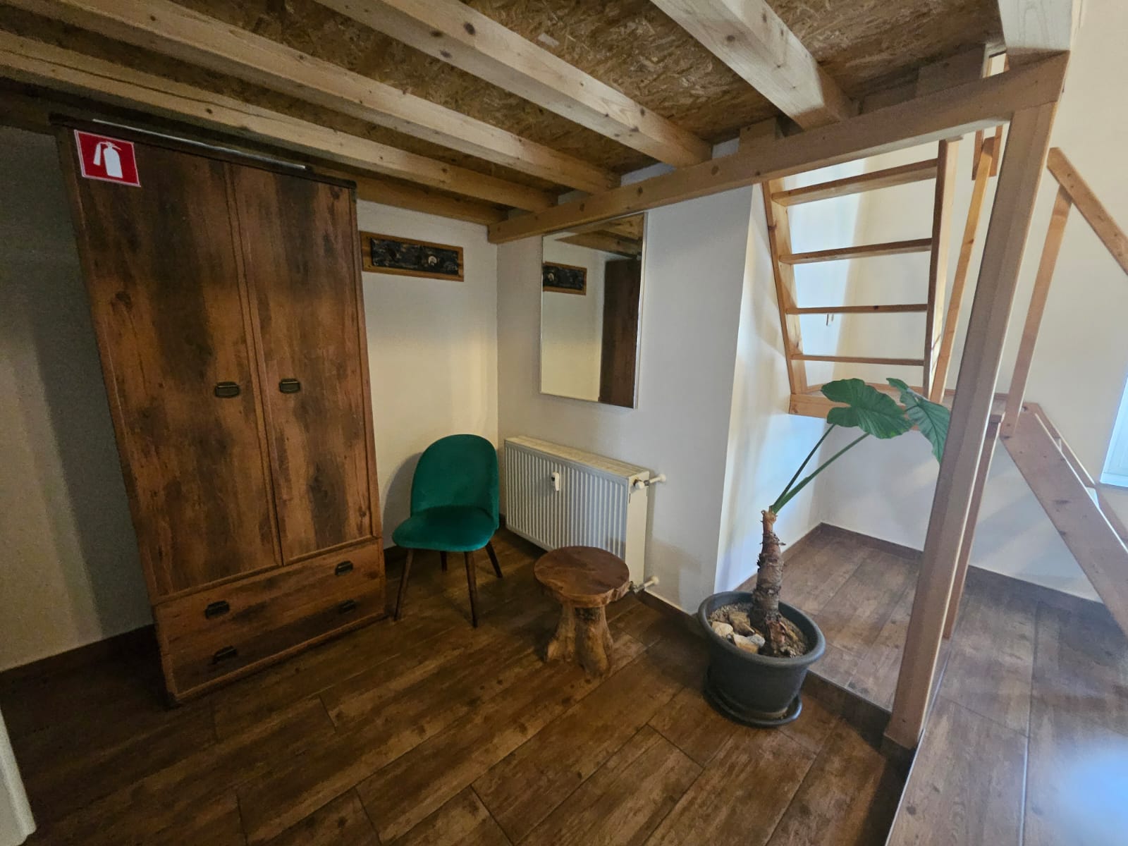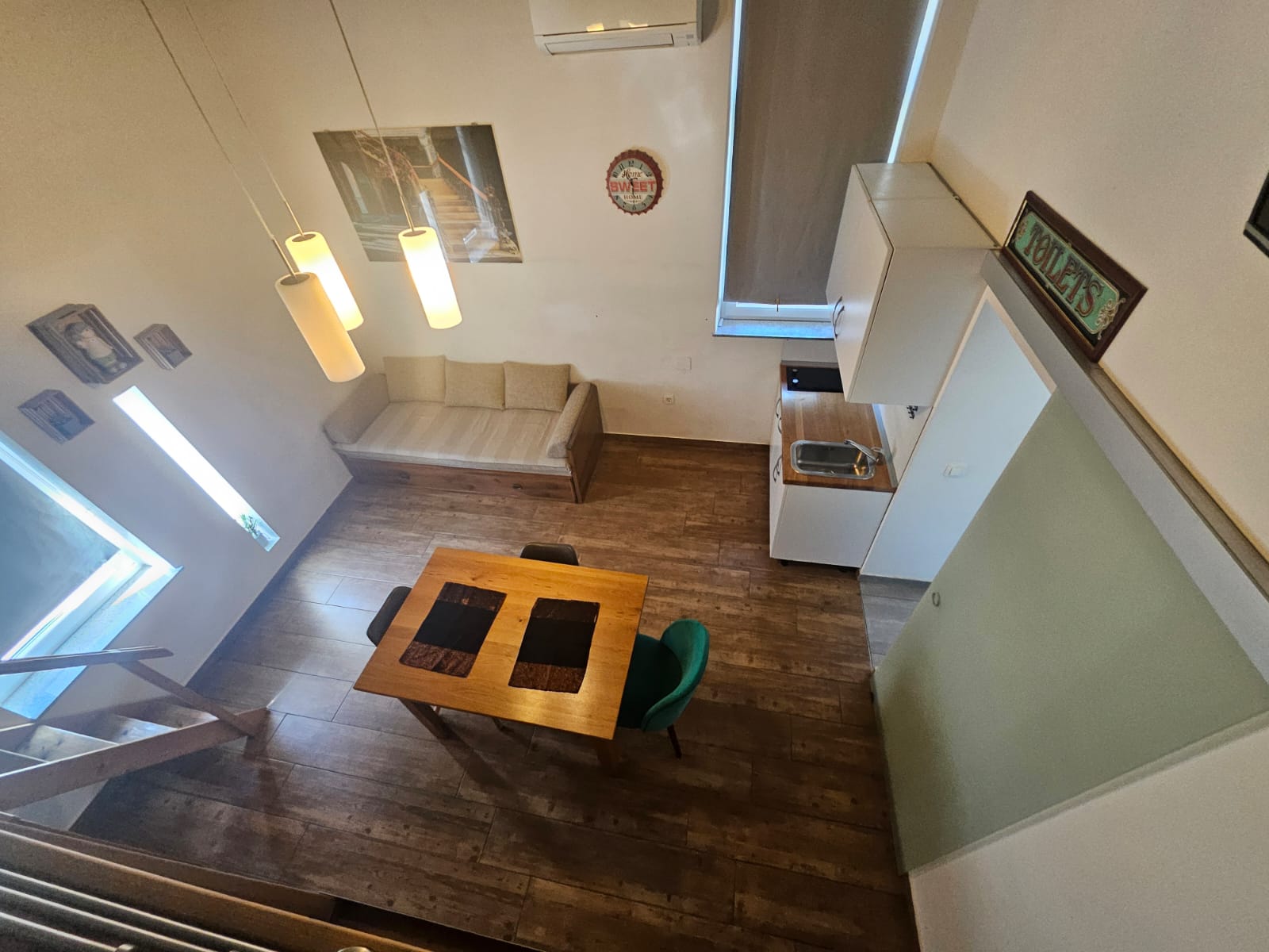 Enjoy an unforgettable stay made possible by this unique accommodation. The apartment is located a 15-minute walk from the old town center. Free parking is available in front of the apartment. Access is through the café, leading to a separate residential area of the apartment. The 45 m² apartment features a gallery with a bed for two people and a sofa in the living room suitable for up to two additional guests. The kitchen is equipped with a mini refrigerator and a stove. Breakfast is included in the price and is served in the café located in front of the apartment.